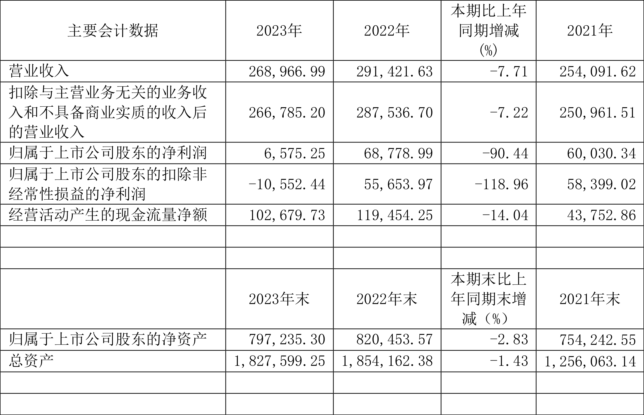 2023年,公司经营活动现金流净额为10.27亿元,同比下降14.04%;筹资活动现金流净额-6.75亿元,同比减少39.87亿元;投资活动现金流净额-18.61亿元,上年同期为-47.45亿元。