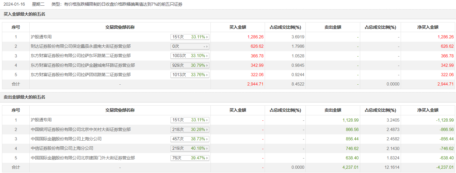 立达信1月16日跌7.71%,全天换手率达27.85%,振幅达5.69%。龙虎榜数据显示,营业部席位合计净卖出1292.3万元。其中,沪股通专用、中国银河证券北京中关村大街证券营业部分别卖出1128.99万元、866.56万元;沪股通专用、财达证券保定蠡县永盛南大街证券营业部分别买入1286.26万元、626.62万元。