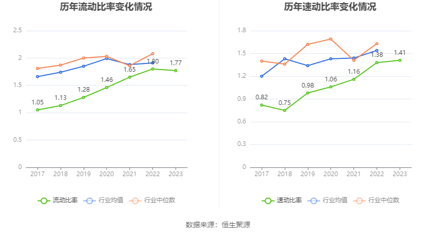 2023年,公司流动比率为1.77,速动比率为1.41。