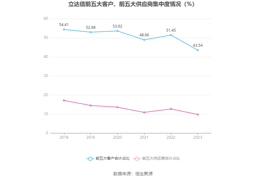 报告期内,公司前五大客户合计销售金额29.09亿元,占总销售金额比例为43.54%,公司前五名供应商合计采购金额3.89亿元,占年度采购总额比例为9.80%。