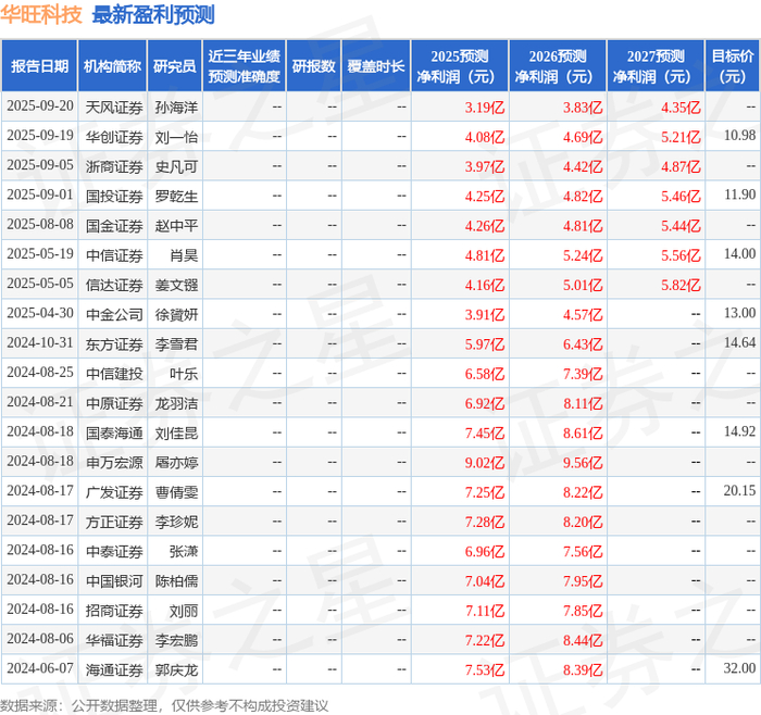 以下是详细的盈利预测信息: