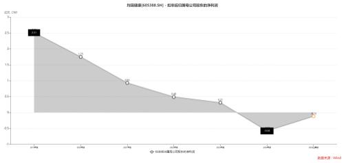 Wind数据显示,2019年至2024年,以及2025年前三季度,均瑶健康的扣非后归属母公司股东的净利润分别为2.51亿元、1.75亿元、0.93亿元、0.49亿元、0.31亿元、-0.58亿元、-0.12亿元。