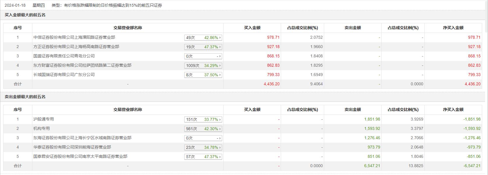 1月18日,晨光新材今日涨停,龙虎榜数据显示,上榜营业部席位全天成交1.1亿元,占当日总成交金额比例为23.29%。其中,买入金额为4436.2万元,卖出金额为6547.21万元,合计净卖出2111.01万元。