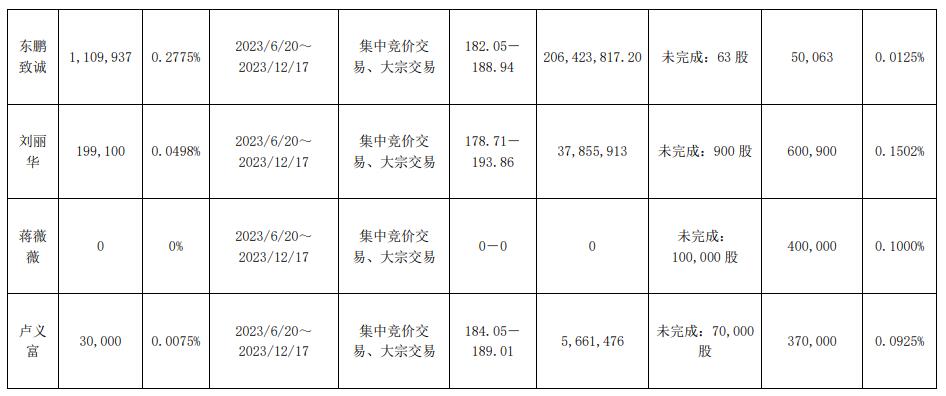 东鹏饮料表示,公司于近日收到上述股东及董监高的《减持计划结果告知函》,上述股东及董监高本次减持计划期限届满,上述股东及董监高在减持期间通过集中竞价及大宗交易方式共计减持公司股份7,437,489股,占公司股份总数的1.8593%。