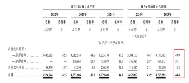 除了财务结构的问题,东鹏饮料在产品多元化方面的挑战同样不容忽视。公司通过“1+6多品类战略”在多元化布局上取得初步成效,电解质饮料"东鹏补水啦"展现出强劲增长潜力,2024年收入激增280.37%,成功跻身十亿级单品行列。但新品当前的盈利能力与核心产品东鹏特饮相比存在显著差距。2025年上半年数据显示,能量饮料(以东鹏特饮为主)的毛利率为49.9%,而作为第二增长曲线的电解质饮料“东鹏补水啦”毛利率仅为31.1%,其他饮料产品(如茶饮、咖啡等)毛利率更是低至14.2%。
