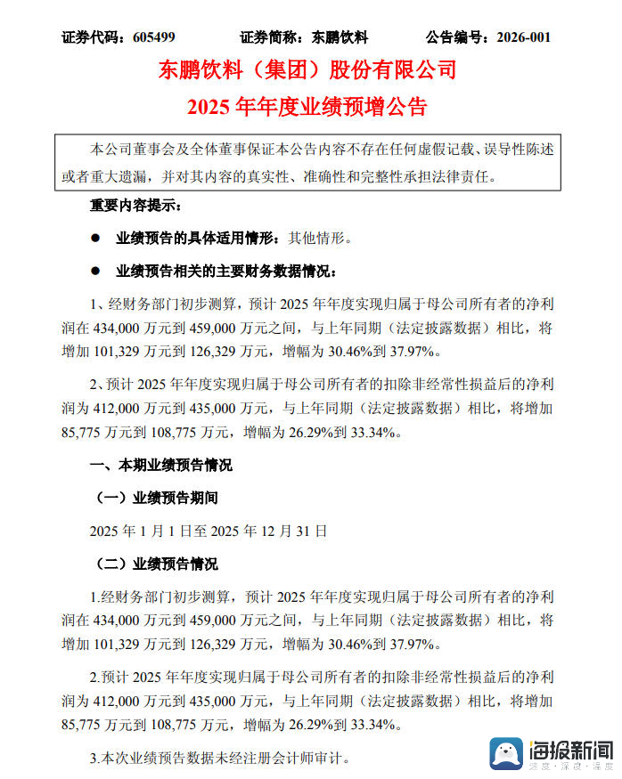 招股书显示,东鹏饮料是中国第一的功能饮料企业,收入增速在全球前20大上市软饮企业中位列第一。2025年最新业绩预告显示,公司2025年预计营业收入将达到207.6亿元至211.2亿元,较上年同期增长31.07%至33.34%;归母净利润43.4亿至45.9亿元,同比增长30.46%至37.97%,连续多年保持30%以上双增长,同饮料行业的一众品牌相比,可谓是遥遥领先。