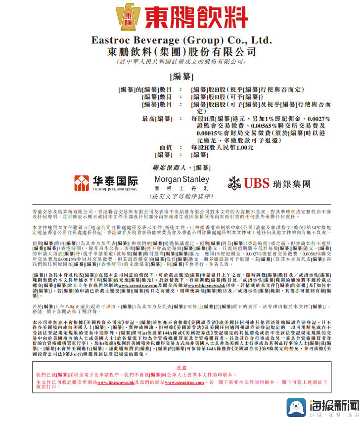东鹏饮料赴港上市招股书。
