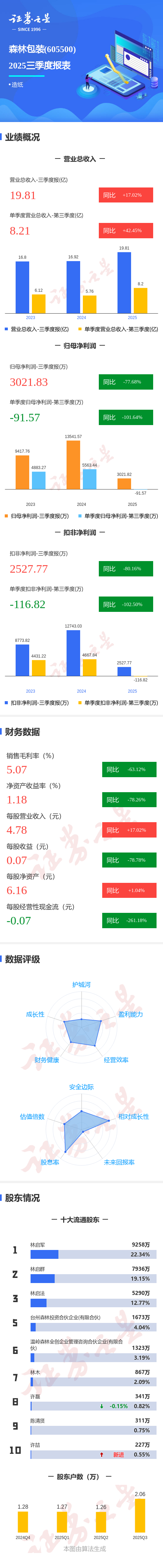 图解森林包装三季报:第三季度单季净利润同比下降101.65%