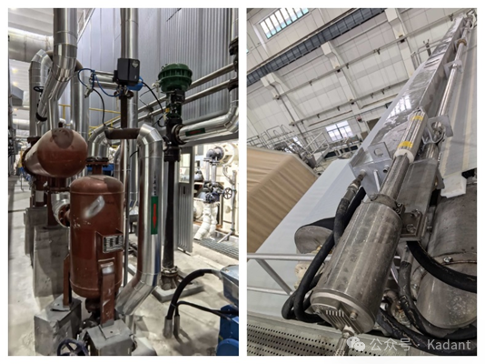 值得一提的是:在尾缸及卷纸缸部位,凯登约翰逊最新一代Lamblow防卡纸气刮刀系统的成套应用,显著提升了引纸过程的顺畅性与可靠性。该系统通过精准稳定的气动剥离与辅助支撑,有效避免发生缠缸塞纸故障,实现从干燥部到卷取部的丝滑过渡,保障了一次性引纸成功与高效稳定上卷,为连续生产奠定坚实基础。