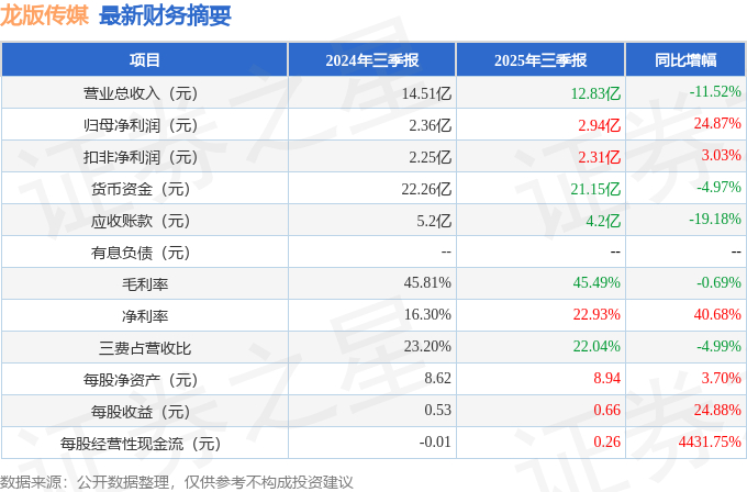 龙版传媒(605577)2025年三季报简析:净利润同比增长24.87%,盈利能力上升