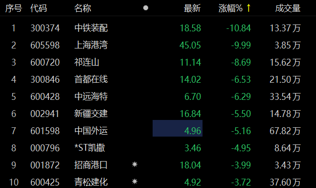 上证报中国证券网讯 5月15日,一带一路概念股走弱,截至10:00,上海港湾跌停,中铁装配跌超10%,祁连山、中远海特等跌超6%。