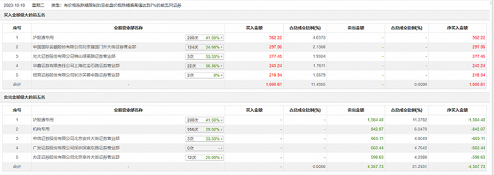 10月10日,上海港湾今日跌停,全天换手率达6.76%,振幅达10.52%。龙虎榜数据显示,营业部席位合计净卖出2756.92万元。其中,机构合计净卖出842.07万元。此外,沪股通专用、中信证券北京安外大街证券营业部分别卖出1584.48万元、669.11万元;沪股通专用、中国国际金融北京建国门外大街证券营业部分别买入562.22万元、297.56万元。