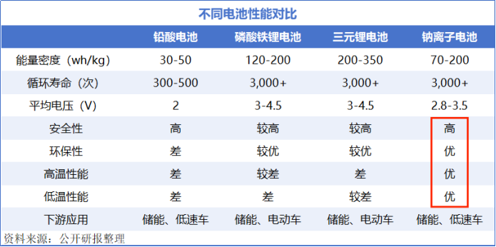 相较锂离子电池,钠离子电池拥有较好的倍率、低温和安全性能,能够解决北方地区低温导致电池掉电的情况,有助于提高电车在北方地区的渗透率。