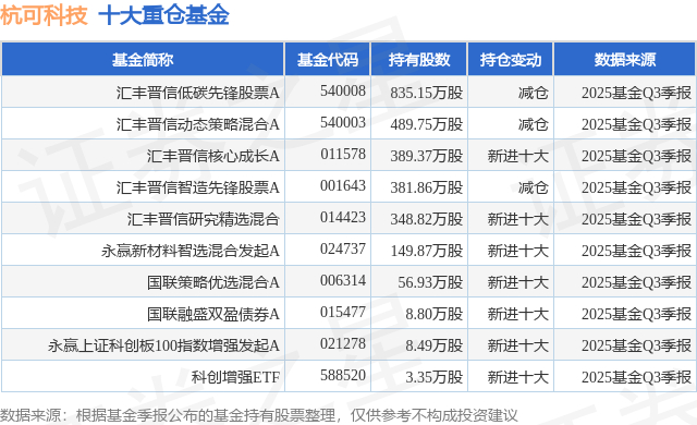 根据2025基金Q3季报公募基金重仓股数据,重仓该股的公募基金共12家,其中持有数量最多的公募基金为汇丰晋信基金的汇丰晋信低碳先锋股票A。汇丰晋信低碳先锋股票A目前规模为36.77亿元,最新净值2.908(11月20日),较上一交易日下跌3.52%,近一年上涨13.5%。该公募基金现任基金经理为陆彬。陆彬在任的基金产品包括:汇丰晋信智造先锋股票A,管理时间为2019年5月18日至今,期间收益率为226.34%;汇丰晋信动态策略混合A,管理时间为2020年5月9日至今,期间收益率为102.46%;汇丰晋信核心成长A,管理时间为2021年5月24日至今,期间收益率为0.62%。