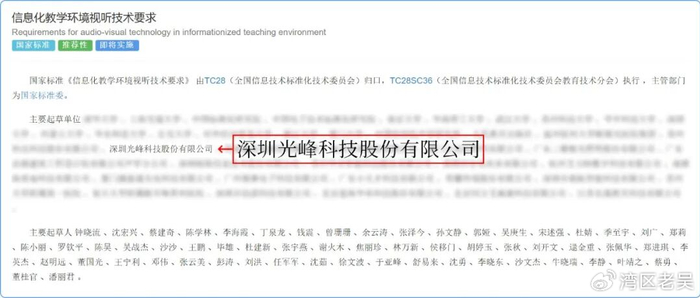 值得一提的是,光峰科技凭借其在教育显示领域的长期技术深耕与场景实践积累,成为该标准的核心起草单位之一。在《信息化教学环境视听技术要求》起草过程中,光峰科技深度参与标准编制,以专业力量助力行业标准完善,其技术实力与行业影响力获得国家级体系的官方背书。