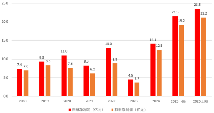 业绩预告显示,公司全年预计实现归母净利润21.50亿至23.50亿元,同比增长52.3%至66.5%;扣非净利润19.20亿至21.20亿元,同比增长53.8%至69.8%。