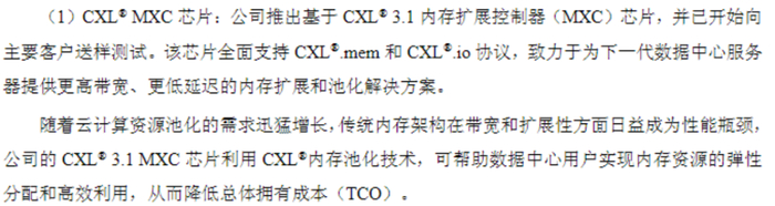 另一个值得关注的产品线是公司在2025年三季度新发布的CXL内存控制器芯片,其作用是帮助数据中心用户实现内存资源的弹性分配和高效利用,从而降低总体拥有成本(TCO)。