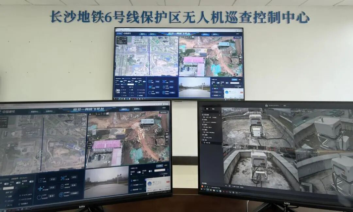 长沙地铁6号线设4座无人机机场,在系统的控制下,无人机按照预设的航线,自主完成从机巢起降、沿线巡航到数据回传的全流程作业。同时,借助AI图像智能识别算法,无人机在巡检过程中自动识别地铁保护区内的地质隐患、设备设施异常、外来入侵等潜在风险,并实时推送报警信息,确保安全隐患能够被及时发现并妥善处理,实现“隐患发现-信息上报-应急响应”的快速闭环。与传统人工巡检相比,无人机巡查效率至少提升6倍,实现了地铁保护区100%覆盖(禁飞区除外)。