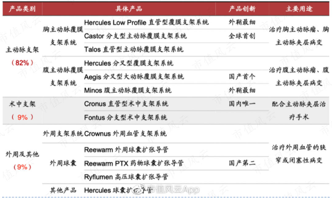 上市前主动脉支架类的产品占比为80%左右。