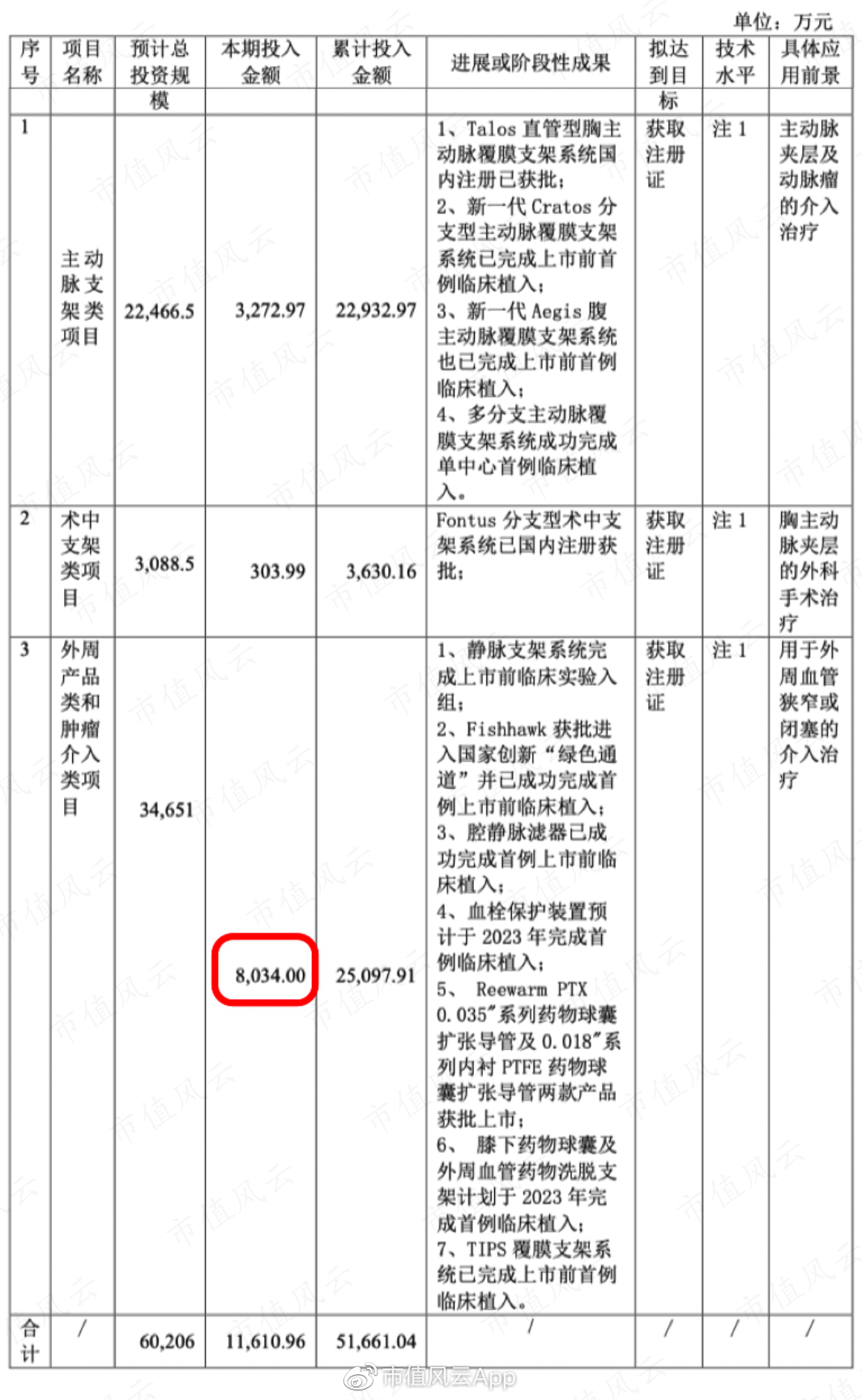 2022年投入最多的也是外周产品类和肿瘤介入类项目,其次是主动脉支架。
