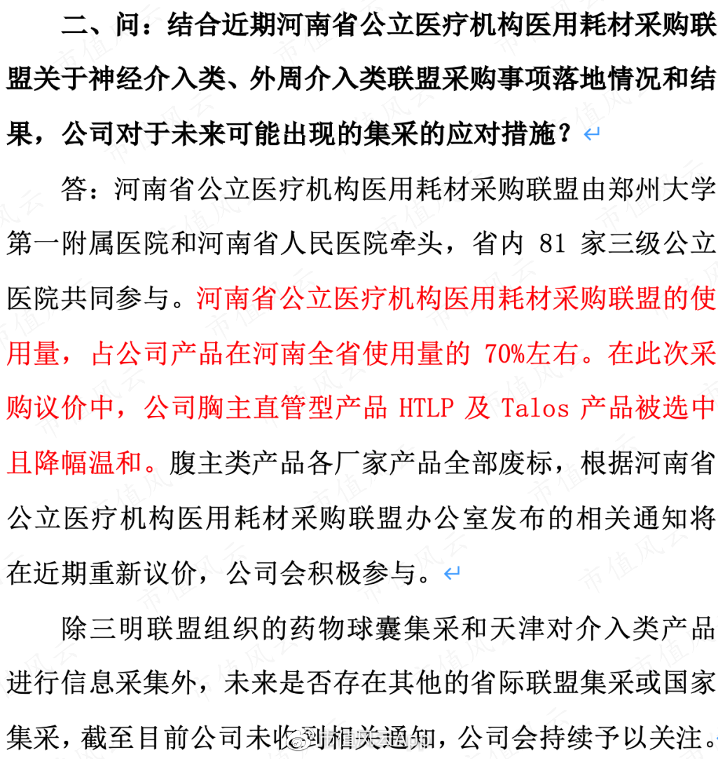 根据心脉医疗的披露,河南采购议价降价温和。