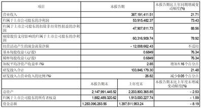 基本每股收益同比增长76.34%,稀释每股收益同比增长76.34%。加权平均净资产收益率同比增加1.16个百分点,主要系本报告期净利润同比增长73.43%所致。