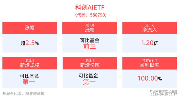 份额方面,科创AIETF近3月份额增长8.73亿份,实现显著增长,新增份额位居可比基金1/9。