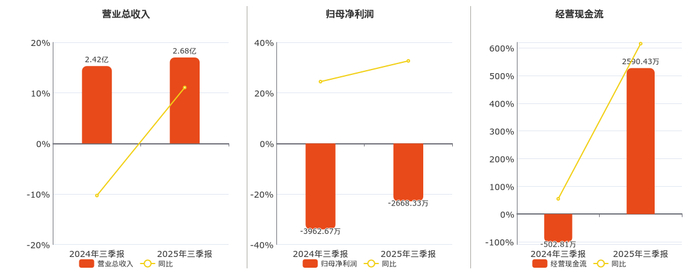 公司营业总收入为2.68亿元,在已披露的同业公司中排名第51。归母净利润为-2668.33万元,在已披露的同业公司中排名第50。经营活动现金净流入为2590.43万元,在已披露的同业公司中排名第42。