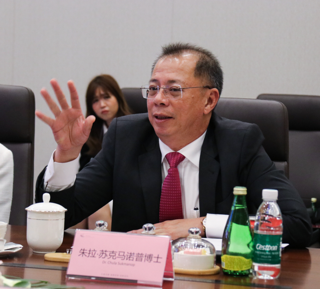 泰国东部经济走廊办公室秘书长朱拉·苏克马诺普博士代表EECO一行介绍了EECO的发展规划及投资政策,并对瀚川的发展目标与商业计划表示认可。他充分阐述了泰国当下对新能源产业的扶持政策,表达了大力支持新能源相关行业发展的决心,同时也希望瀚川能够持续促进泰国新能源产业的发展,构建更完善的生态链。朱拉·苏克马诺普博士表示,近年来中国对泰国投资持续增长,以新能源汽车产业为亮点的中国投资带来相应产业链和技术,助力泰国提振经济、促进绿色发展,欢迎更多的像瀚川这种优质的新能源产业链高端装备企业投资泰国,EEC愿意为瀚川在泰国的发展提供商业、人才等多方面支持。