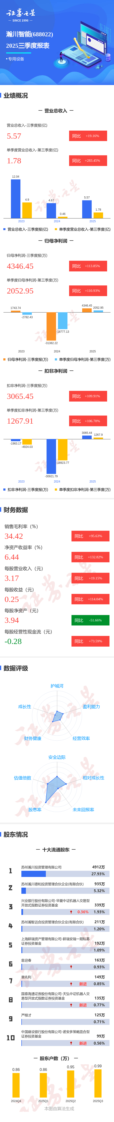 图解瀚川智能三季报:第三季度单季净利润同比增长110.93%