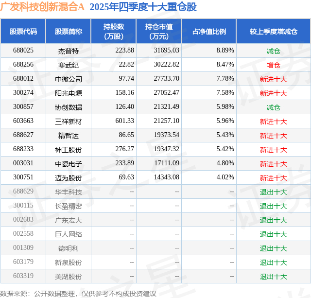 重仓杰普特的前十大公募基金请见下表: