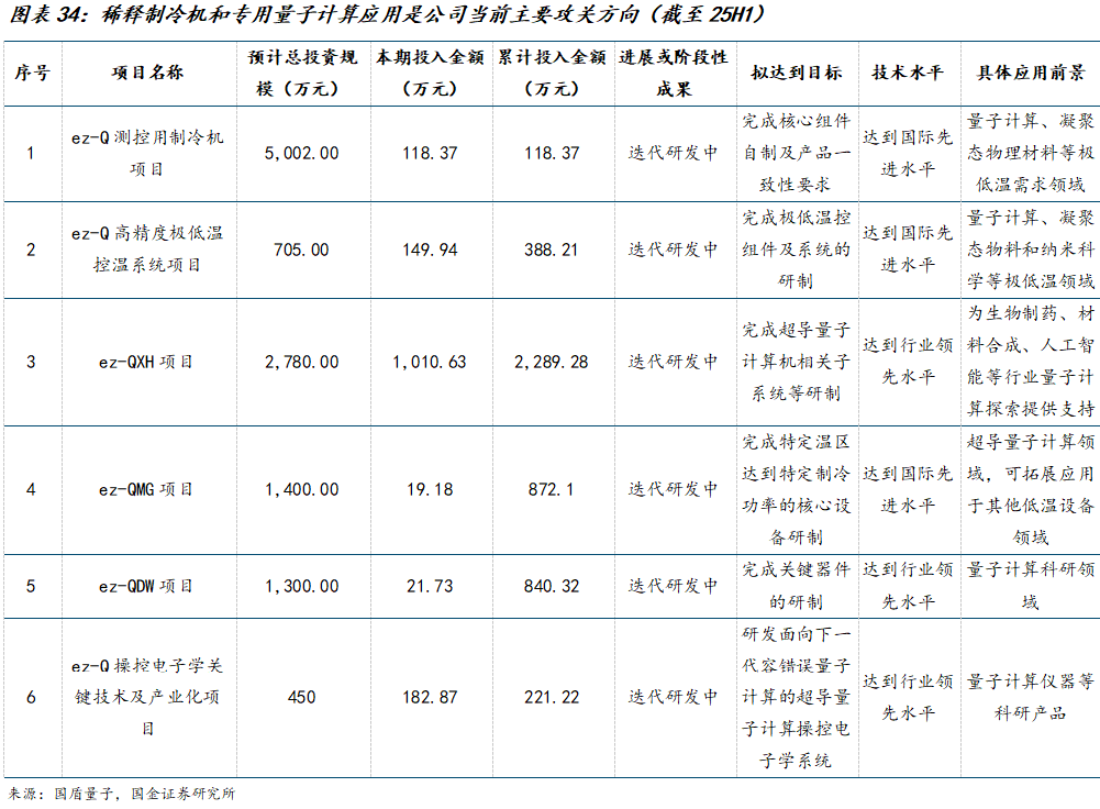 核心组件研发持续推进,不断完善国产化自主可控产业链布局。量子计算是量子科技领域最大蓝海,公司稳步推进千比特超导量子计算测控系统、稀释制冷机及相关核心组件国产化自研及交付,2025年上半年量子计算研发投入占比达42.46%,较去年同期提升6.85%。