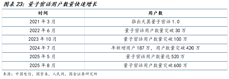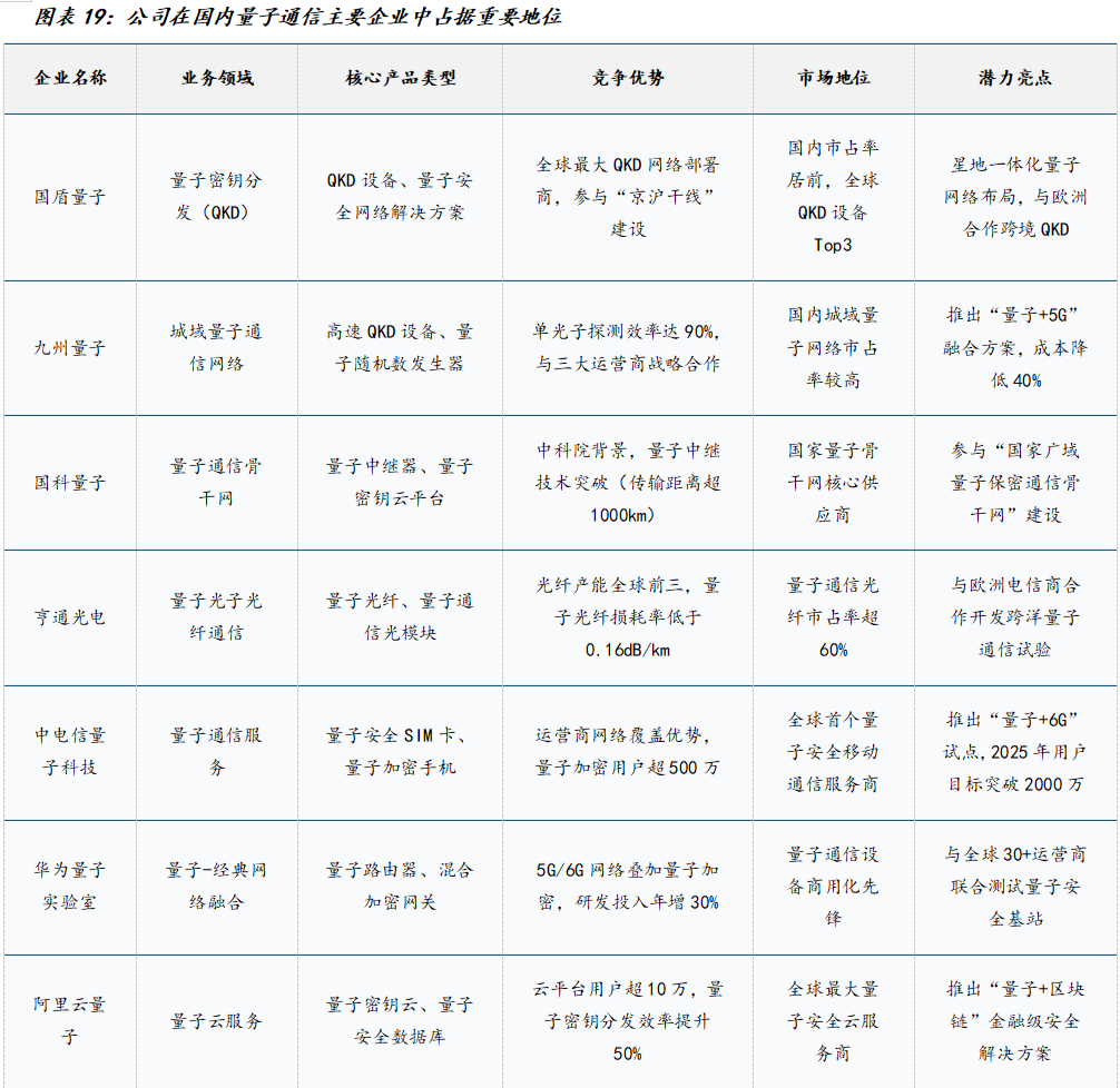 公司在全球量子通信领域处于领先地位。根据光子盒数据,QKD设备方面,公司产品在工作距离和集成度等关键应用指标上处于国际先进水平,技术成熟度较高;QKD网络方面,公司携手中电信量子凭借成熟技术与广泛生态合作,多次参与建设国内量子保密通信应用示范网,是国内量子通信组网的核心供应商。此外,在24年已对公司完成控股的中国电信,坐拥优质光纤资源和海量政企客户,有望推动公司在量子通信市场中持续保持领先地位。
