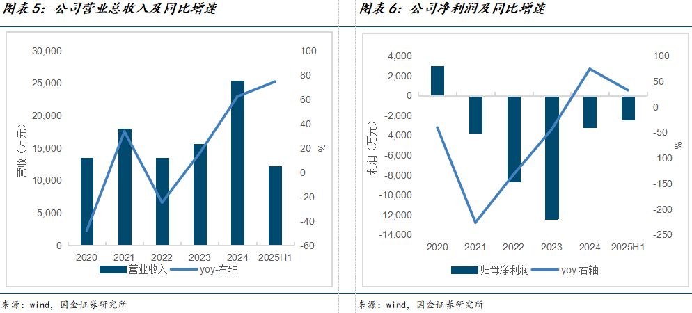 收入稳健增长,盈利能力持续改善。2025H1公司营收达1.21亿元,同比增长74.54%,营收增速再创新高,这一增长主要得益于公司量子通信、 量子计算、量子精密测量三大业务板块今年均实现较大幅度提升。营收带动下,公司2025H1亏损再度收窄,利润同比增加32.69%至-2379万元。