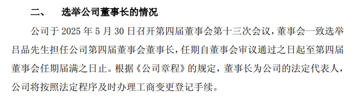 5月30日晚,国盾量子发布公告,公司于 2025 年 5 月 30 日召开第四届董事会第十三次会议,董事会一致选举吕品担任公司第四届董事会董事长,任期自董事会审议通过之日起至第四届董事会任期届满之日止。