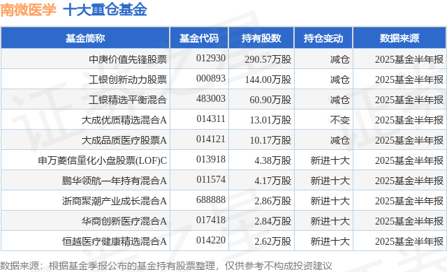 重仓南微医学的前十大公募基金请见下表: