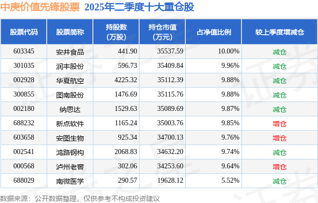 中庚价值先锋股票的前十大重仓股如下: