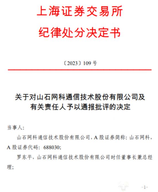 值得关注的是,2023年8月,山石网科收到了来自上海证券交易所的关于对山石网科通信技术股份有限公司及有关责任人予以通报批评的决定。