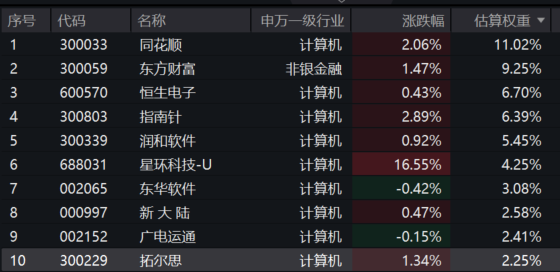 金融科技ETF汇添富(159103)标的指数成分股多数冲高,星环科技涨超16%,同花顺、指南针涨超2%,东方财富、拓尔思等冲高,东华软件、广电运通等回调。