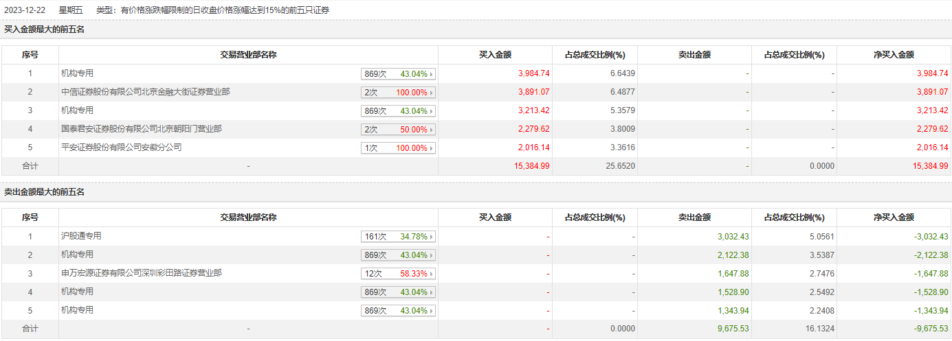 禾迈股份12月22日涨15.65%,全天换手率达5.82%,振幅达18.47%。龙虎榜数据显示,营业部席位合计净买入5709.46万元。其中,机构买入7198.16万元,卖出4995.22万元,合计净买入2202.94万元。此外,中信证券北京金融大街证券营业部、国泰君安证券北京朝阳门营业部分别买入3891.07万元、2279.62万元;沪股通专用、申万宏源证券有限公司深圳彩田路证券营业部分别卖出3032.43万元、1647.88万元。