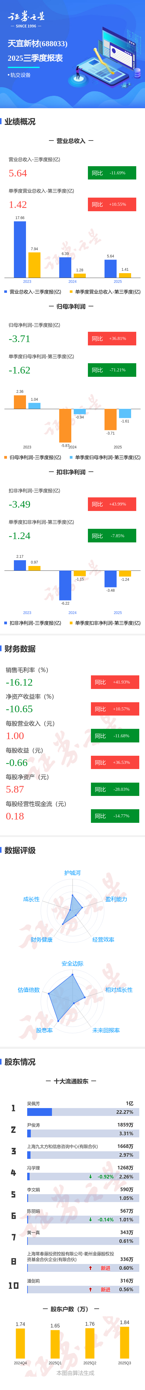 图解天宜新材三季报:第三季度单季净利润同比下降71.21%