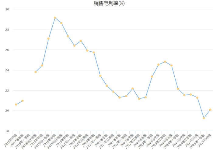 半年报显示,期内营收290.77亿元,同比下滑15.86%;归母净利润12.13亿元,同比暴跌57.48%。一季度尤为惨淡,营收130.04亿元,同比下降25.45%,净利润仅4.90亿元,同比骤降69.87%,创2019年上市以来单季最大跌幅。