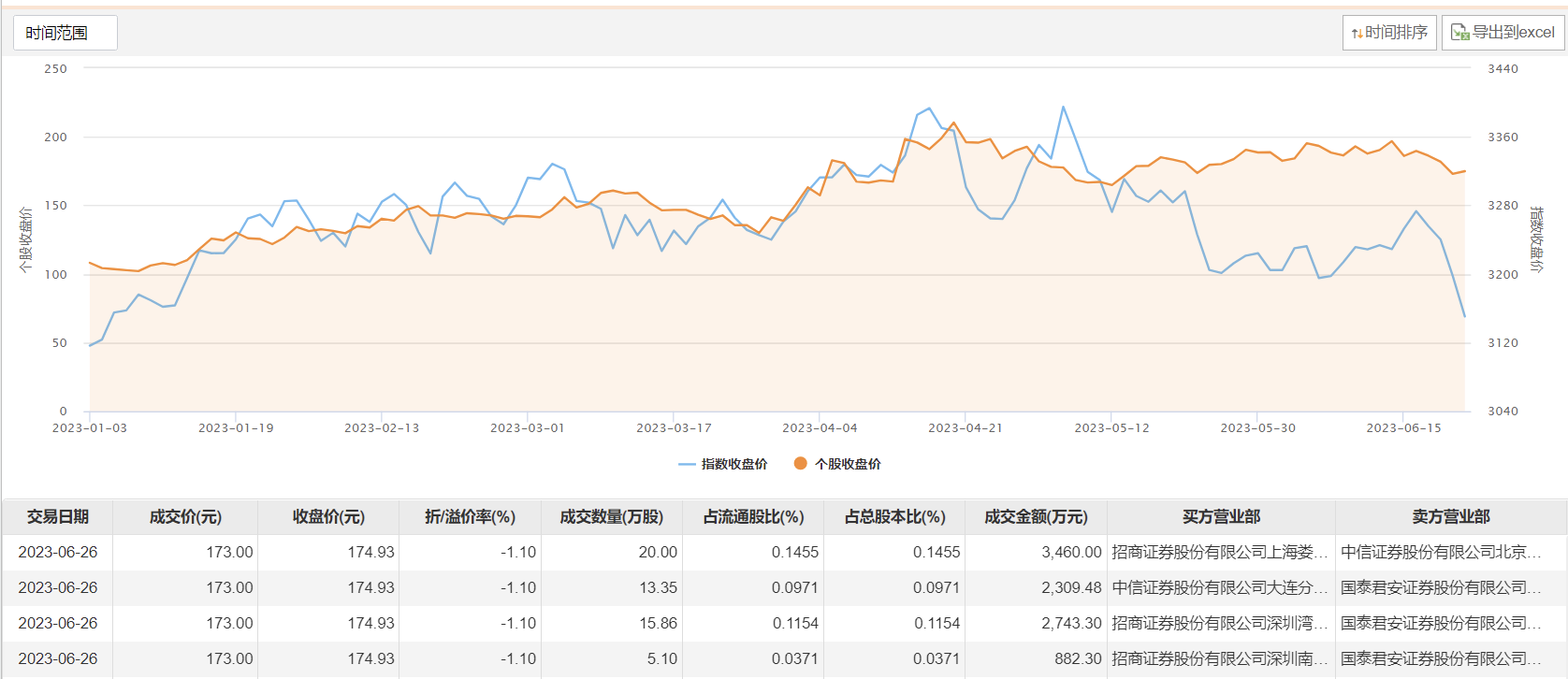 芯源微6月26日大宗交易成交59.56万股,成交额1.03亿元,占当日总成交额的14.47%,成交均价173.15元,较市场收盘价174.93元折价1.02%,其中最高成交价174.93元,最低成交价173元。