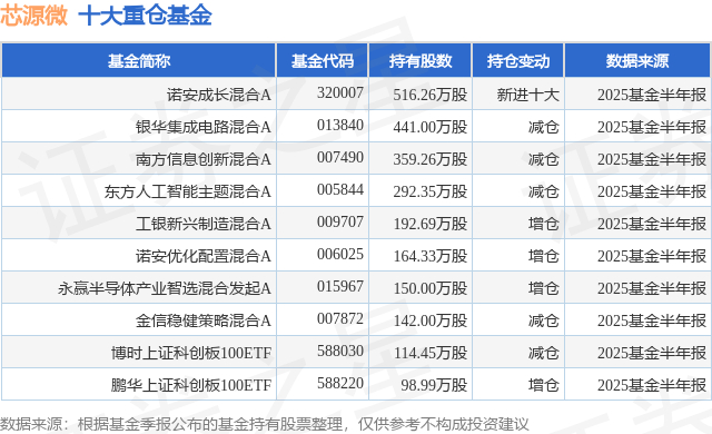 重仓芯源微的前十大公募基金请见下表: