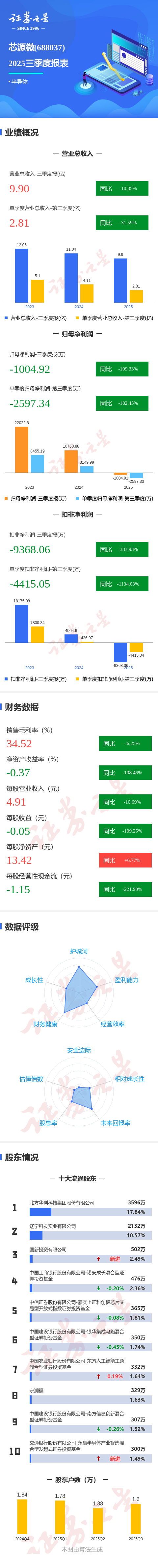 图解芯源微三季报:第三季度单季净利润同比下降182.46%