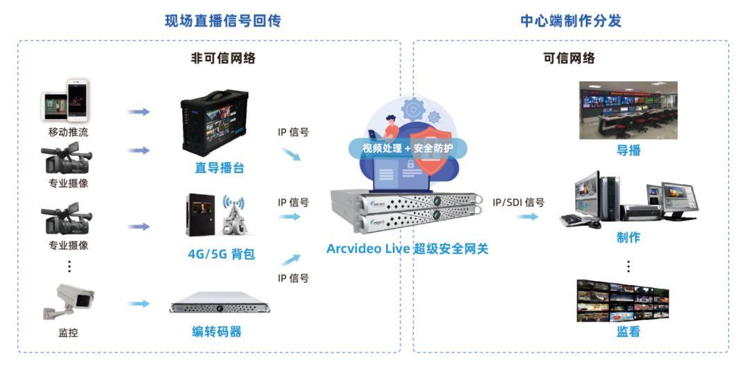 在传统广电体系中,演播室通常使用高质量、未压缩的信号进行节目制作,而新媒体平台使用的大多是压缩过的信号。这就导致,当直播内容从专业级的广电系统传输至开放的互联网平台,就必须经过复杂的协议转换和安全防护处理。
