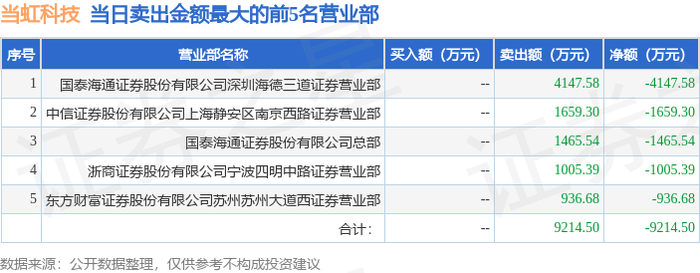 9月30日当虹科技(688039)龙虎榜数据:游资越王大道上榜
