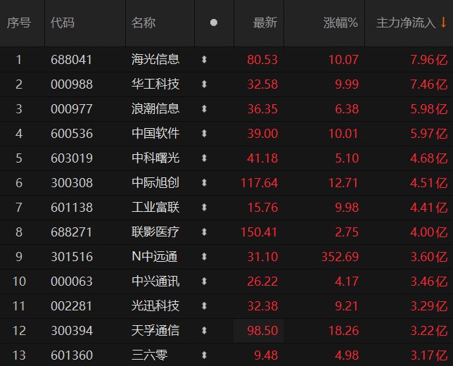 上证报中国证券网讯 据Choice金融终端数据,截至12月8日14时00分,13只个股主力资金净流入超3亿元。其中,
