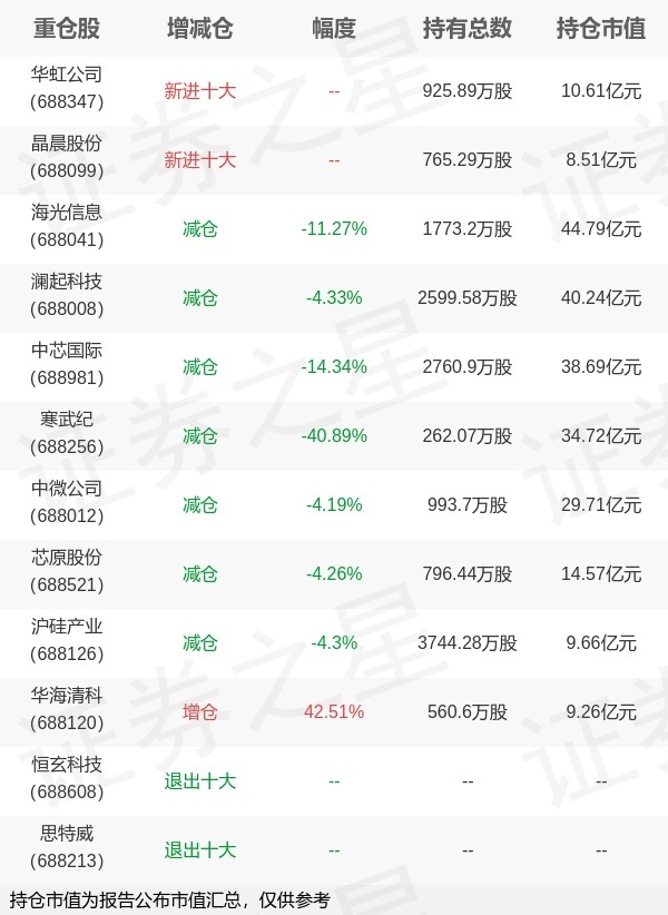 嘉实基金田光远旗下嘉实上证科创板芯片ETF三季报最新持仓,重仓海光信息