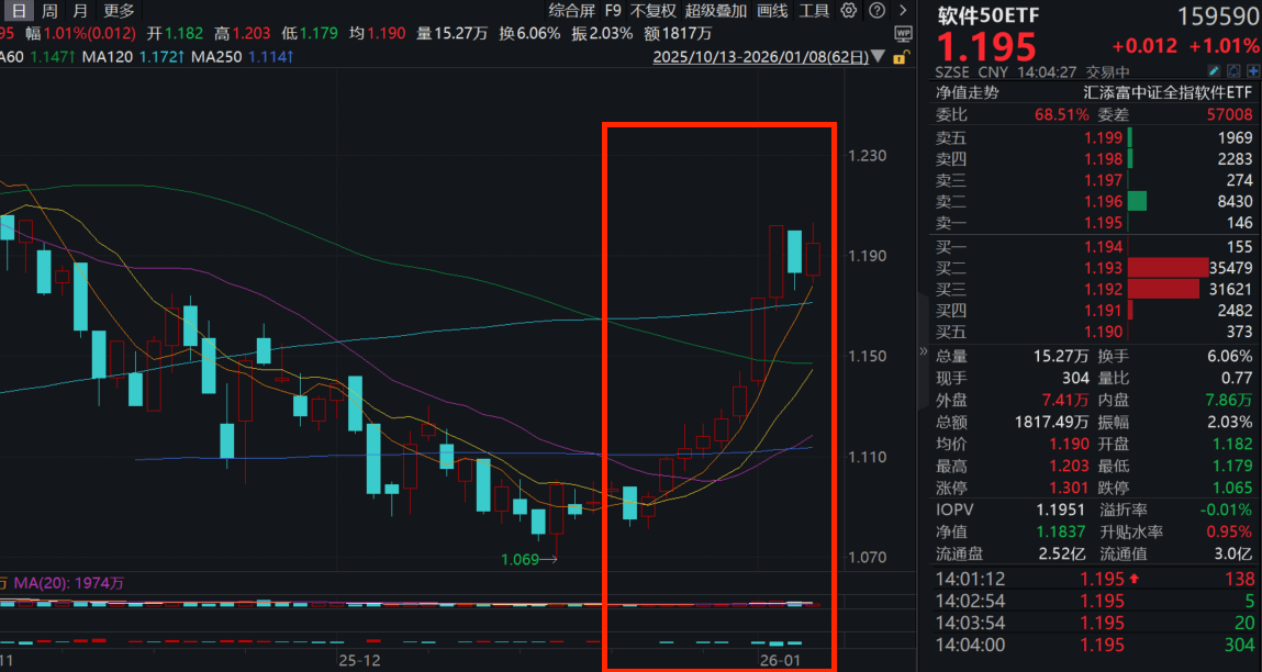 软件板块飘红,软件50ETF(159590)涨近1%!